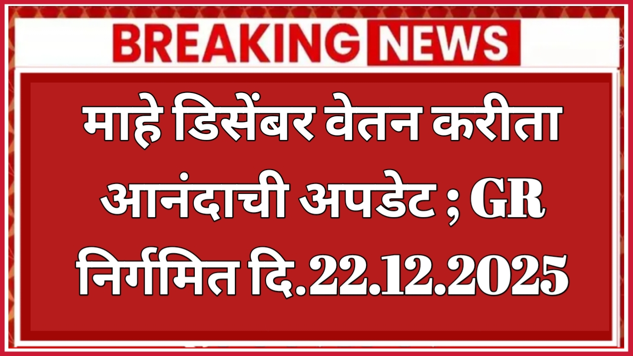 - माहे डिसेंबर वेतन करीता आनंदाची अपडेट ; GR निर्गमित दि.22.12.2025
