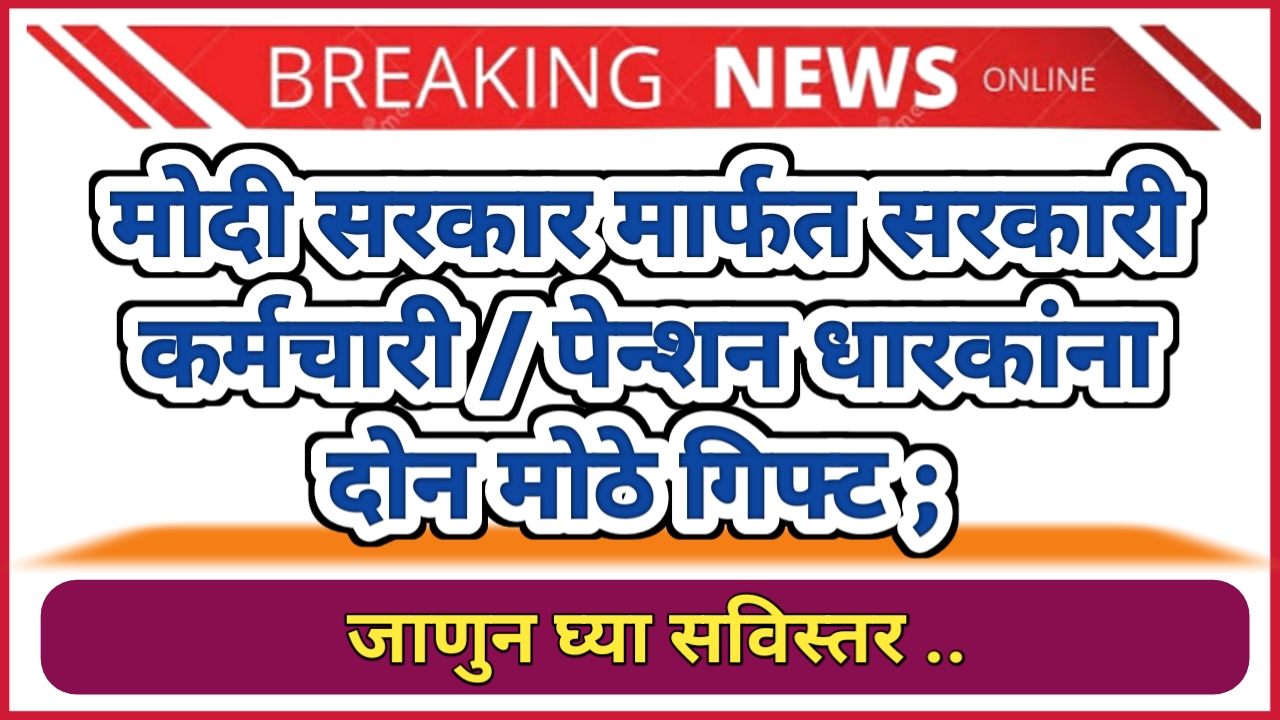 - मोदी सरकार मार्फत सरकारी कर्मचारी / पेन्शन धारकांना दोन मोठे गिफ्ट ; जाणुन घ्या सविस्तर ..